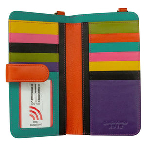 AP6363/DENIMMULTI Leather Crossbody Handbag with Phone Pocket